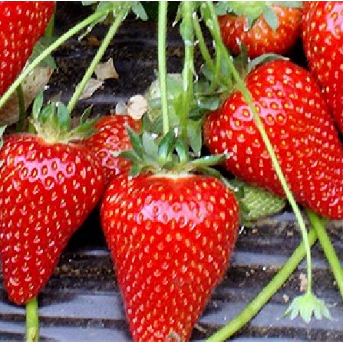 Сорт Сан Андреас - клубника ремонтантная НСД. Ягоды твердые, блестящие, имеют форму конуса..